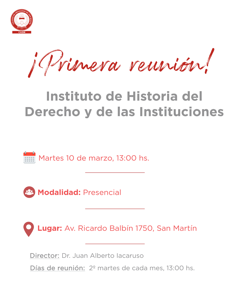 ¡Primera reunión! Instituto de Historia del Derecho y de las Instituciones te invita a participar de su primera reunión