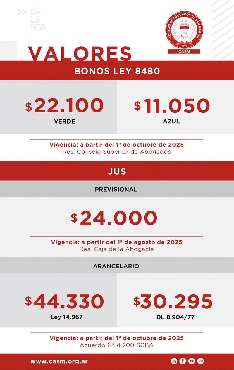 Nuevos valores de Bono Ley 8480 y JUS