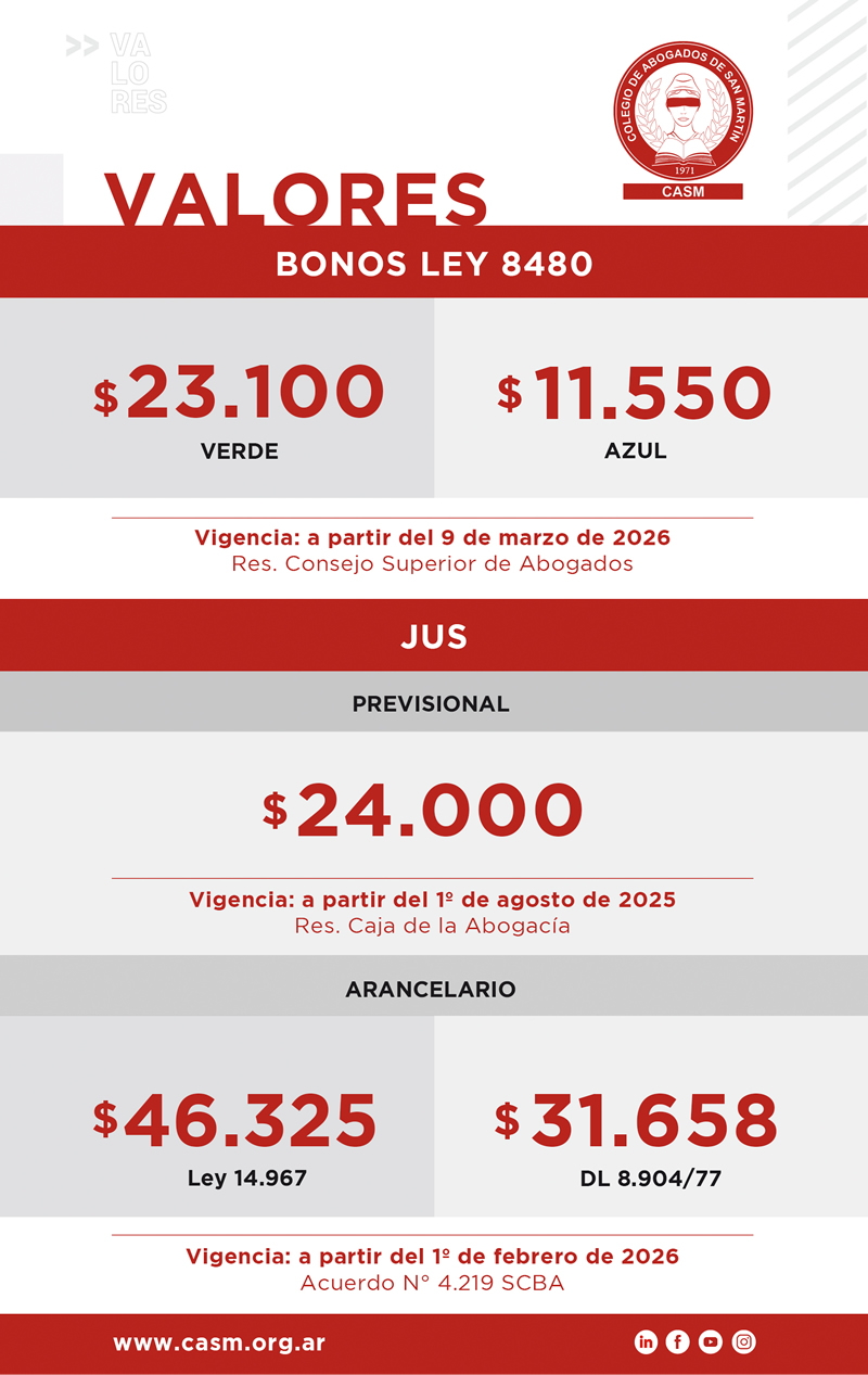 Nuevo valor del Bono Ley 8480 y Jus Arancelario