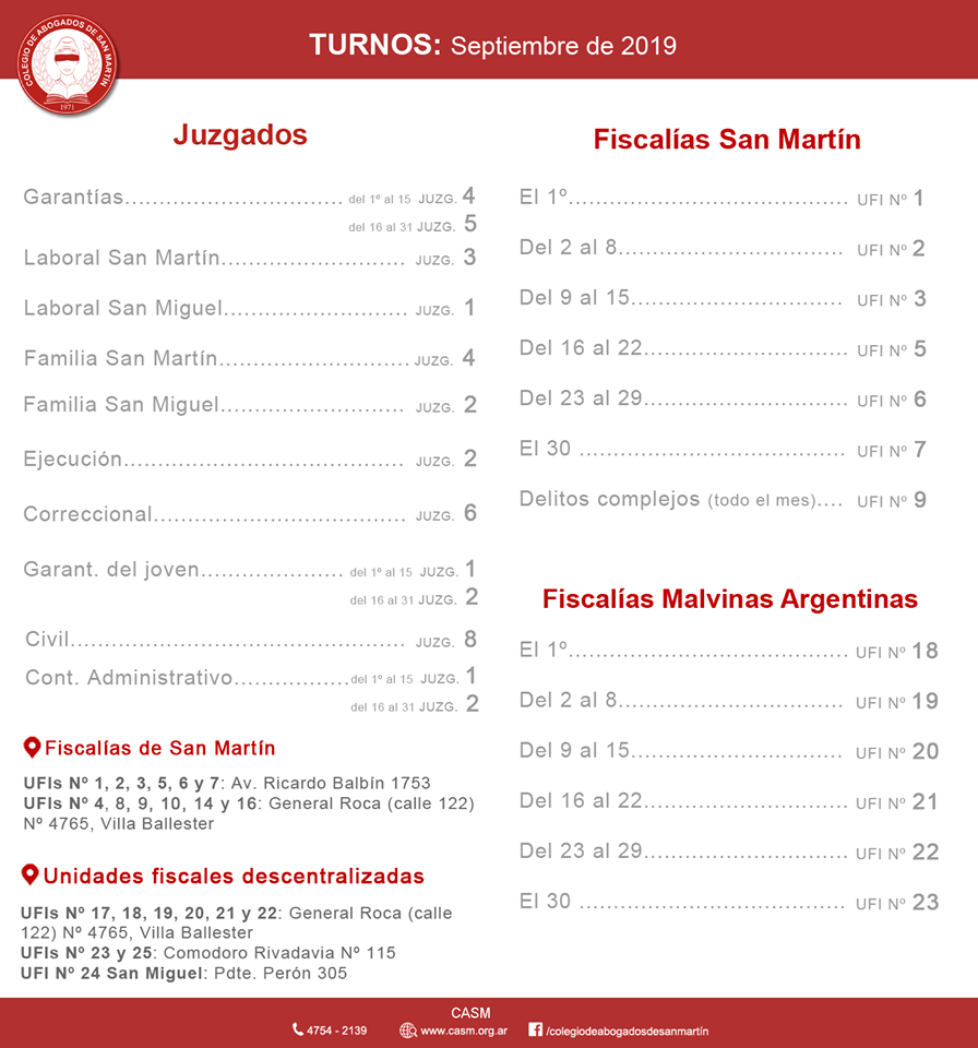 El CASM pone a disposición el relevamiento efectuado a los organismos del departamento judicial San Martín respecto a la modalidad de notificación alternativa adoptada por cada uno durante el período de ASPO (carta documento, notificadores ad hoc, etc.).