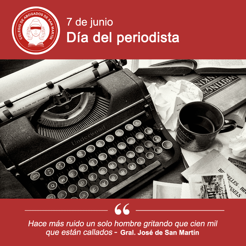 Desde el Colegio de Abogados de San Martín saludamos a todos los profesionales que con su labor y compromiso diarios no solo mantienen informados a sus ciudadanos, sino que les brindan las herramientas necesarias para poder formar un pensamiento crítico con argumentos de calidad. Promovamos siempre la libertad de expresión, el derecho a la información y el periodismo independiente: “Sin periodistas no hay periodismo, y sin periodismo no hay democracia”.