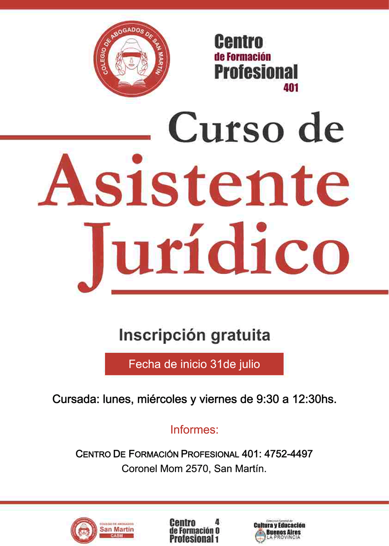 CENTRO DE FORMACIÓN PROFESIONAL 401. Inscripción gratuita. Fecha de inicio: 31 de julio.
