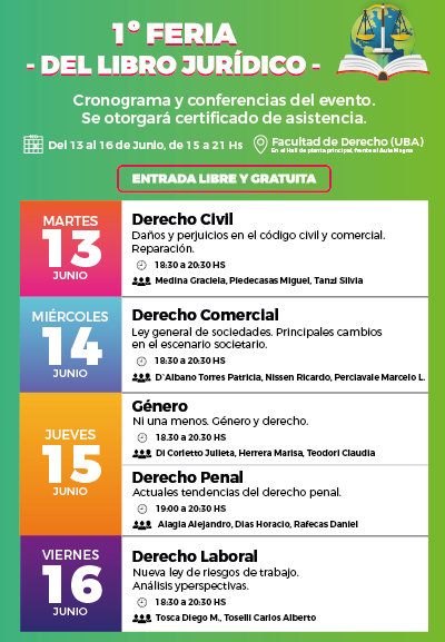 DEL 13 AL 16 DE JUNIO DE 15 A 21HS. FACULTAD DE DERECHO (UBA). ENTRADA LIBRE Y GRATUITA.