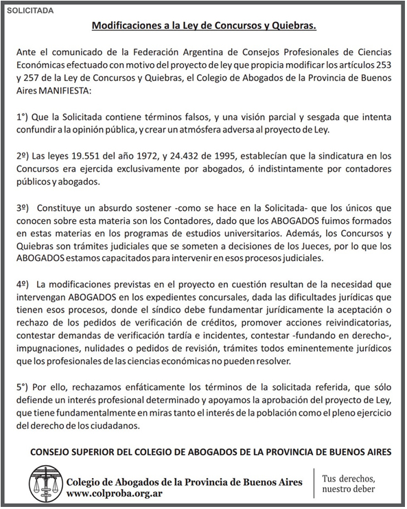 COLPROBA - Modificación a la Ley de concursos y quiebras