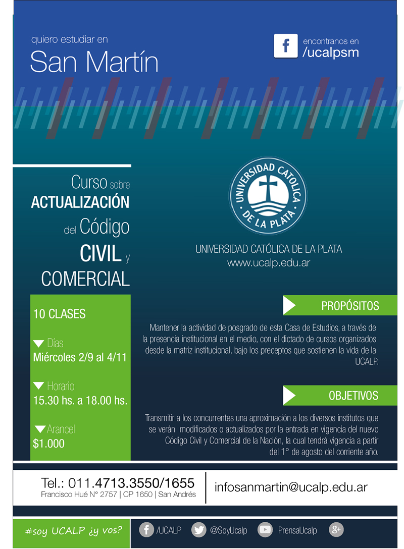 Información acerca del Curso sobre actualización del Código Civil y Comercial que se dictará en la UCALP Extensión San Martín.