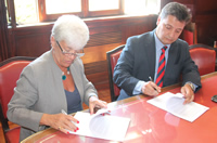 El día 21 pasado, el Colegio de Abogados de San Martín y la Universidad Católica de La Plata han suscripto el convenio específico a través del cual se instrumentará un sistema de pasantías para los alumnos de esa casa de estudios en el ámbito del Consultorio Jurídico Gratuito de nuestro Colegio. El referido convenio se enmarca en la política y vocación desplegada por ambas instituciones de inserción y acercamiento al resto de la sociedad. En la misma fecha también se ha suscripto un convenio especifico que permitirá, a partir del año 2016, que los ingresantes a la Carrera de Abogacía en dicha Universidad que resultaren cónyuges, hijos, padres o hermanos de Abogados matriculados en el CASM reciban una bonificación del 20% en los aranceles mensuales. El Dr. Vilaplana, acompañado por el Sr. Vicepresidente de nuestro Colegio, Dr. Marcelo Di Salvo y la Directora del Consultorio Jurídico Gratuito, Dra. Silvia Mariana Abriata, destacó la importancia del afianzamiento del vínculo con una institución de reconocida trayectoria, augurando una mayor profundización del mismo para el futuro.