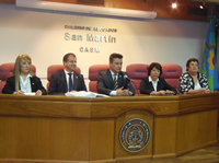 El presidente del Colegio de Abogados, Dr. Marcos Darío Vilaplana, dio inicio a la tercera charla del ciclo organizado por el Instituto de Derecho Político, a cargo del Dr. Walter Carusso, en el que los principales candidatos a Intendente del Partido de Gral. San Martín anticipan sus proyectos políticos para las elecciones generales del próximo 25 de octubre. Esta vez fue el turno del candidato por el Frente para la Victoria, Dr. Gabriel Katopodis, quien tuvo la posibilidad de exponer sus planes para el municipio. Con la bienvenida al Dr. Katopodis y a todos los vecinos que se acercaron hasta el Colegio de Abogados de San Martín, el presidente del CASM dio por iniciada la charla. Por su parte, el actual intendente, Gabriel Katopodis dio cuenta de su presente gestión en relación a los diversos logros que se han realizado en obras a la comunidad y en seguridad. Destacó que falta mucho por hacer en términos de revalorización estructural y de mejoras en la seguridad, asumiendo “con humildad y responsabilidad” las prioridades pendientes de realizar para los próximos cuatro años, como la ampliación de la red cloacal y la mejora de los centros comerciales.