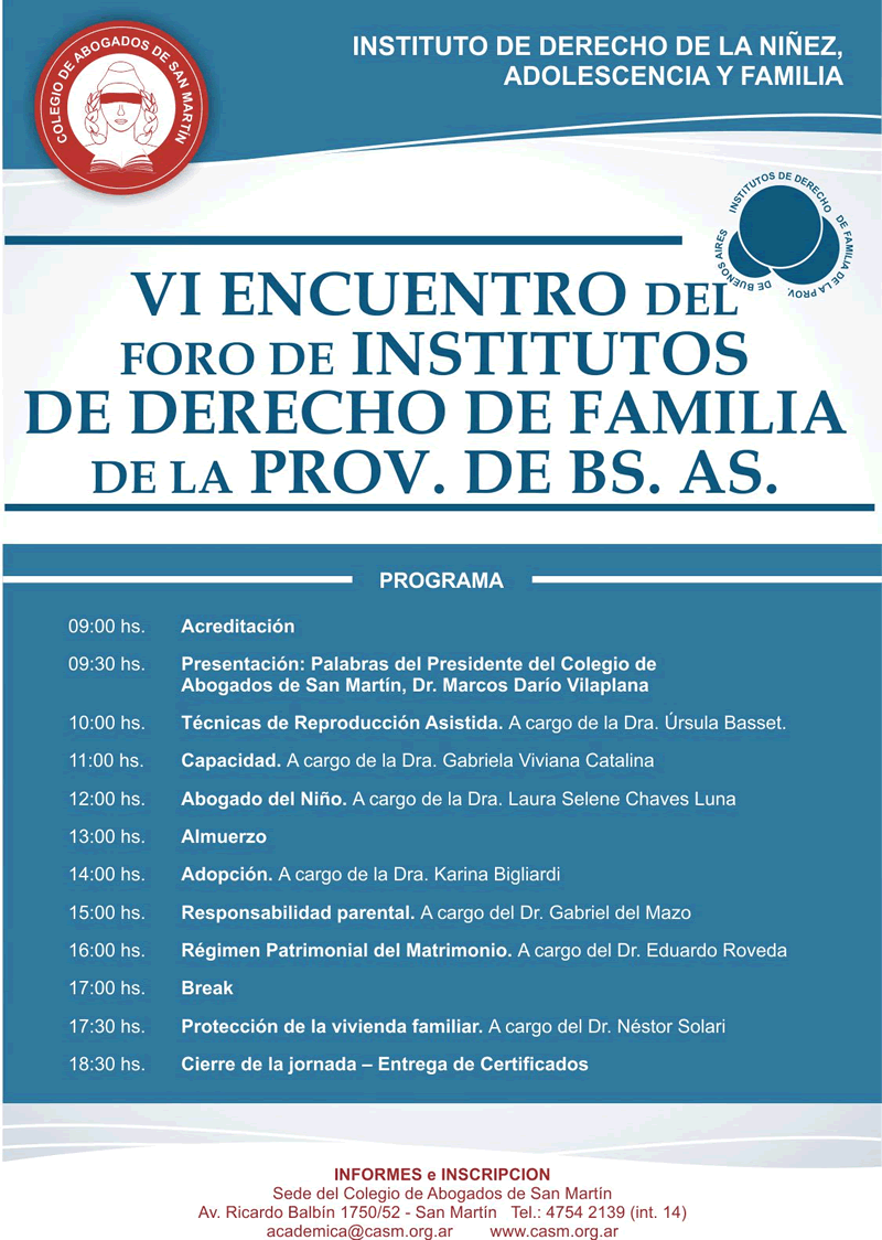 VI ENCUENTRO DEL FORO DE INSTITUTOS DE DERECHO DE FAMILIA DE LA PROVINCIA DE BUENOS AIRES