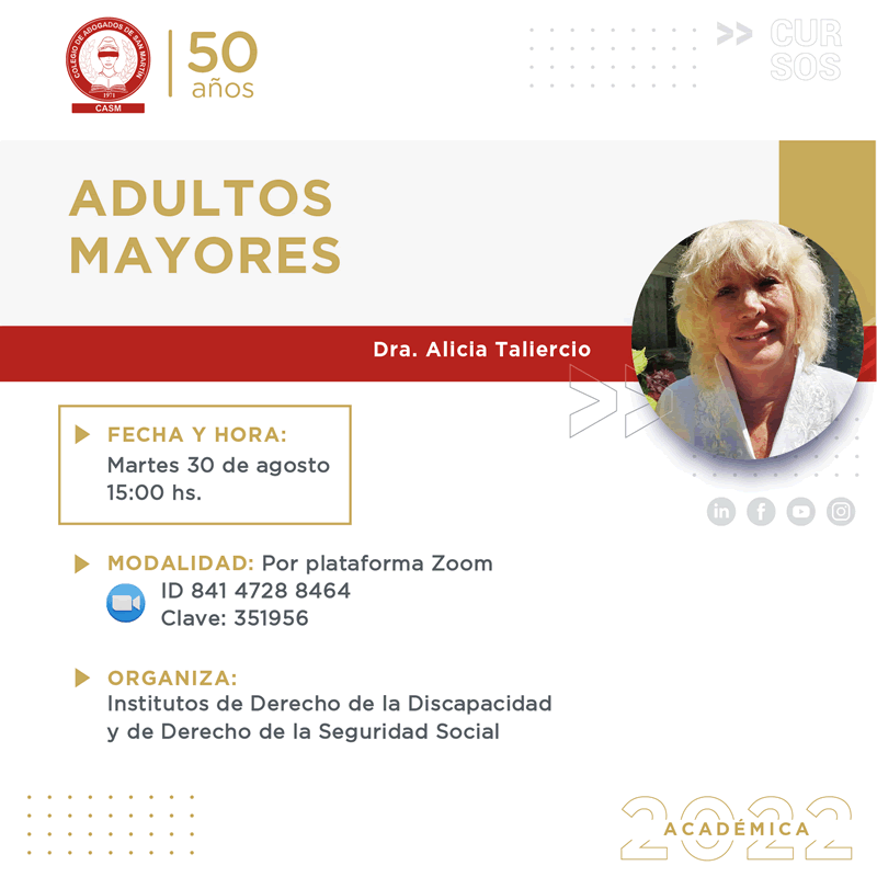 Se expedirán certificados de asistencia digitales para profesionales de la abogacía por un valor de $300 (solicitud optativa). Una vez concluida y registrada la participación en la actividad, el certificado podrá abonarse personalmente en la Tesorería del Colegio, o bien vía WhatsApp al 11-2450-8058.