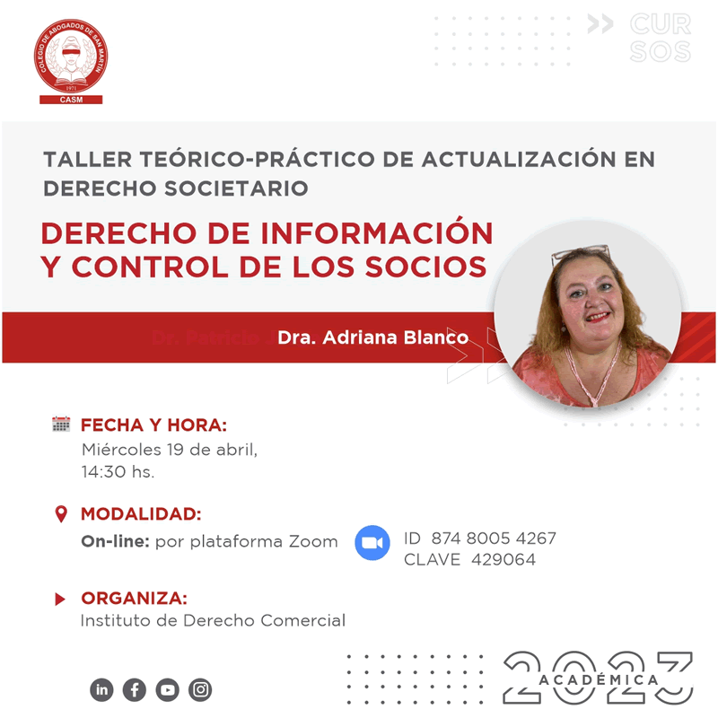 Disertante: Dra. Adriana Blanco Delegada de Personas Jurídicas sede San Martín. Coordinadora de la Sala Sociedades, Instituto Derecho Comercial, Colegio de Abogados de San Martín