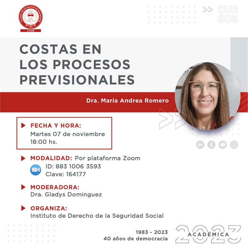 Modalidad: Por plataforma Zoom ID: 883 1006 3593 Clave: 164177
