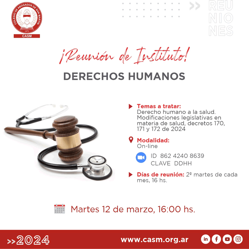Temas a tratar: Derecho humano a la salud. Modificaciones legislativas en materia de salud, decretos 170, 171 y 172 de 2024