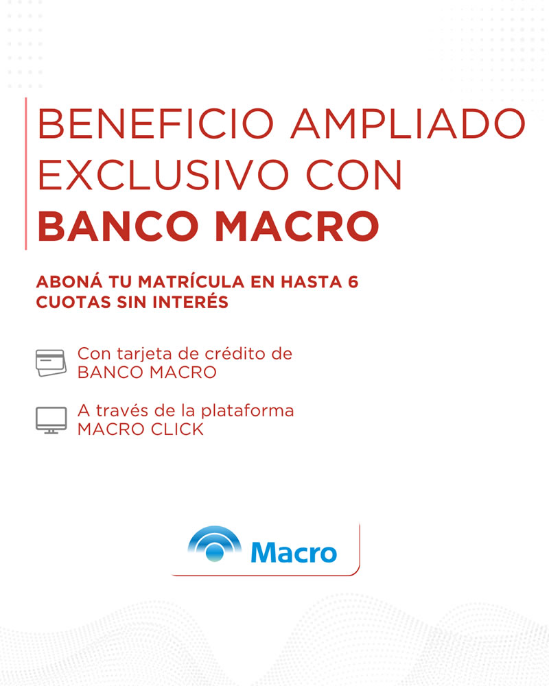 Ahora podrás abonar tu matrícula en hasta 6 cuotas sin interés con tu tarjeta de crédito del Banco Macro 📲 Hacelo 100% online desde la plataforma Macro Click 🌐 Ingresá en pagos.macroclickpago.com.ar/SearchDeuda/796395 Ponte al día de forma rápida, segura y sin moverte de tu casa. Más información: www.casm.org.ar/pagos
