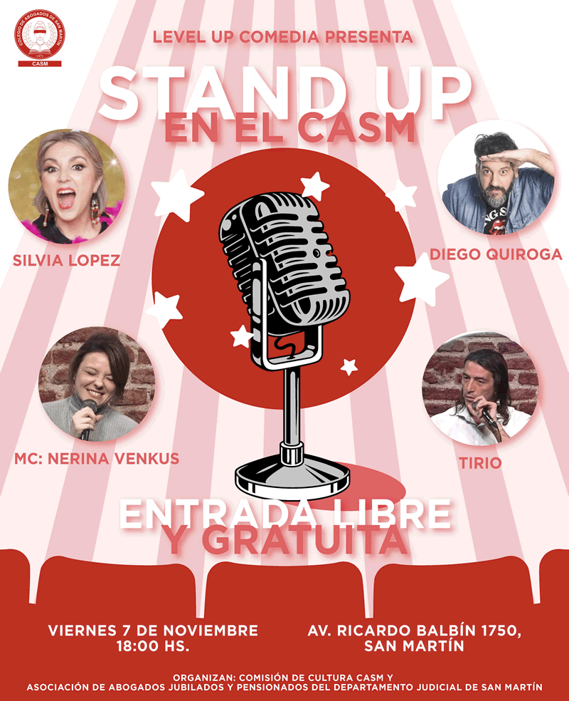 Se presentará el espectáculo “𝗟𝗲𝘃𝗲𝗹 𝗨𝗽 𝗖𝗼𝗺𝗲𝗱𝗶𝗮”, con la participación de Silvia López, Diego Quiroga, Tirio y la conducción de Nerina Venkus.