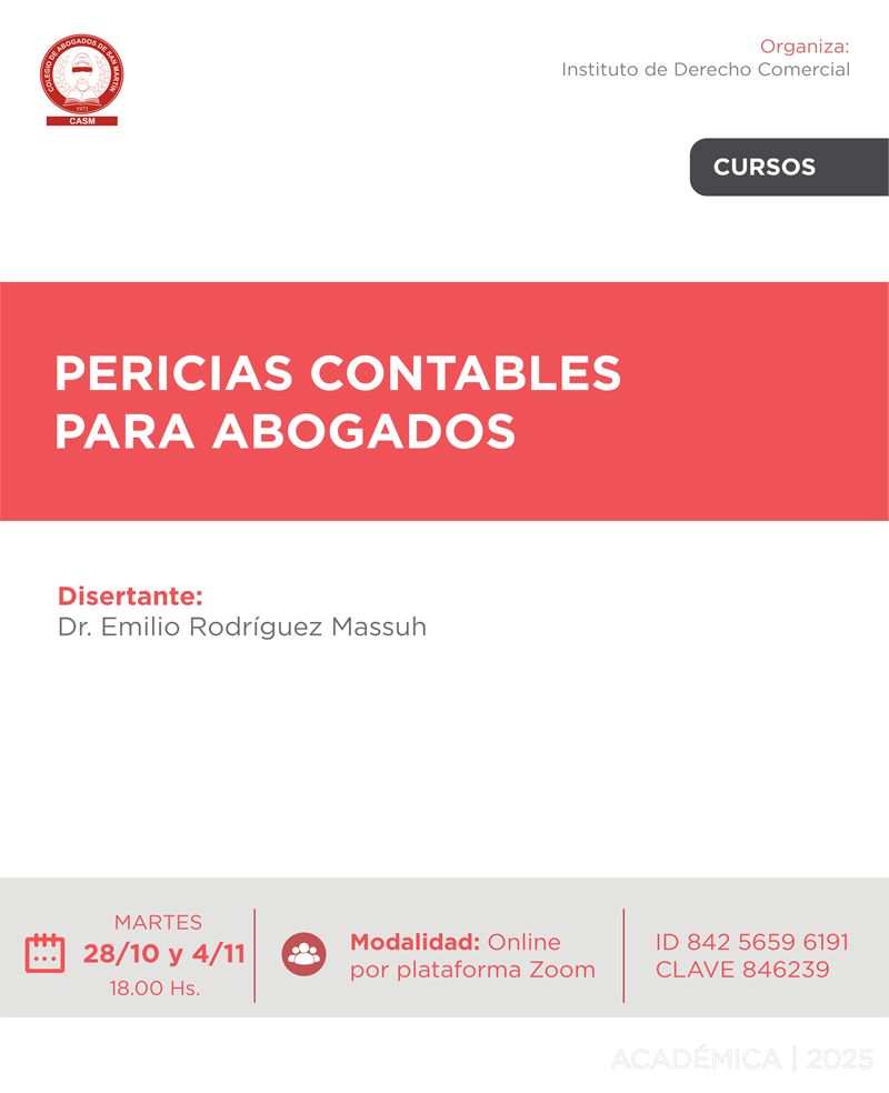 Temas a tratar: Los libros contables y su clasificación. Forma de llevar los libros e información que contienen según la óptica contable. Principios contables y registración en pericias. informes del auditor y validez de las pericias. Puntos de pericia.