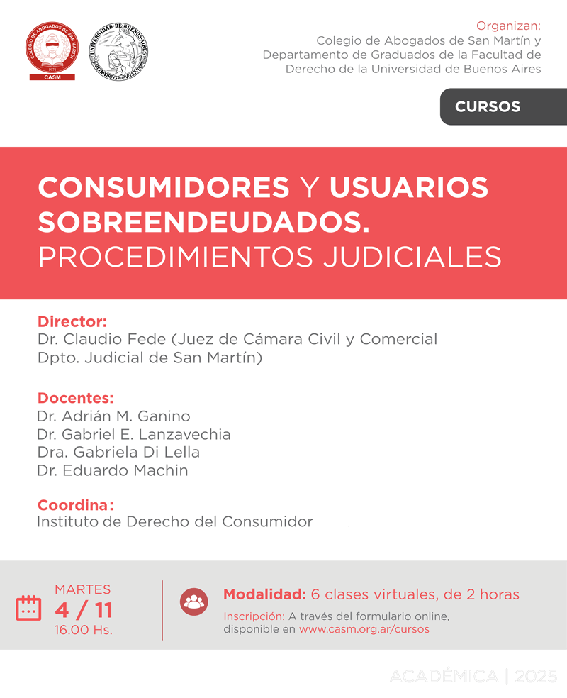Organizan: Colegio de Abogados de San Martín y departamento de Graduados de la Facultad de Derecho de la Universidad de Buenos Aires