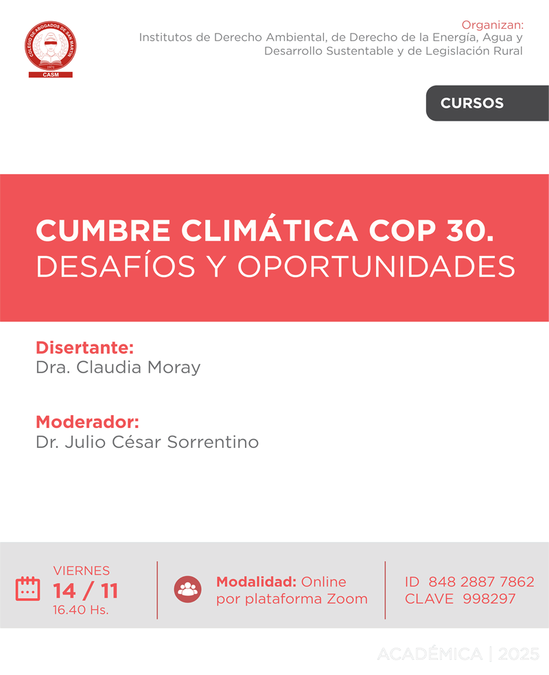 Organizan: Institutos de Derecho Ambiental, de Derecho de la Energía, Agua y Desarrollo Sustentable y de Legislación Rural